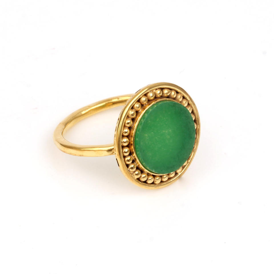 2025 Designer Naturel Vert Agate Fine Anneau Bonne Qualité En Argent Sterling Élégant À La Mode Avec Placage Or Femmes Cadeau Bijoux