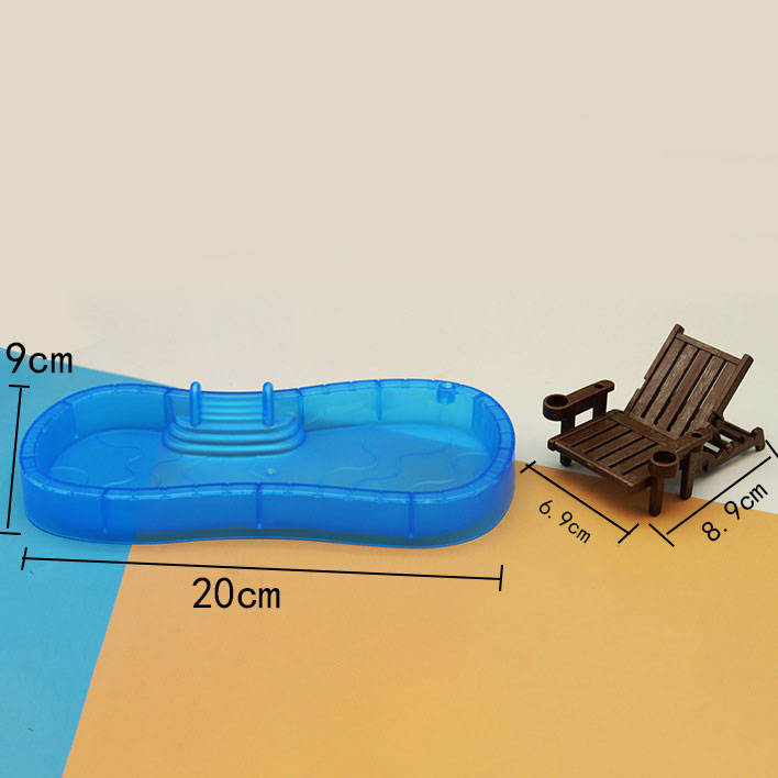 2025 maison de poupée Miniature piscine Iatable anneau et chaise ensemble Mini cercle de natation plage soleil parapluie