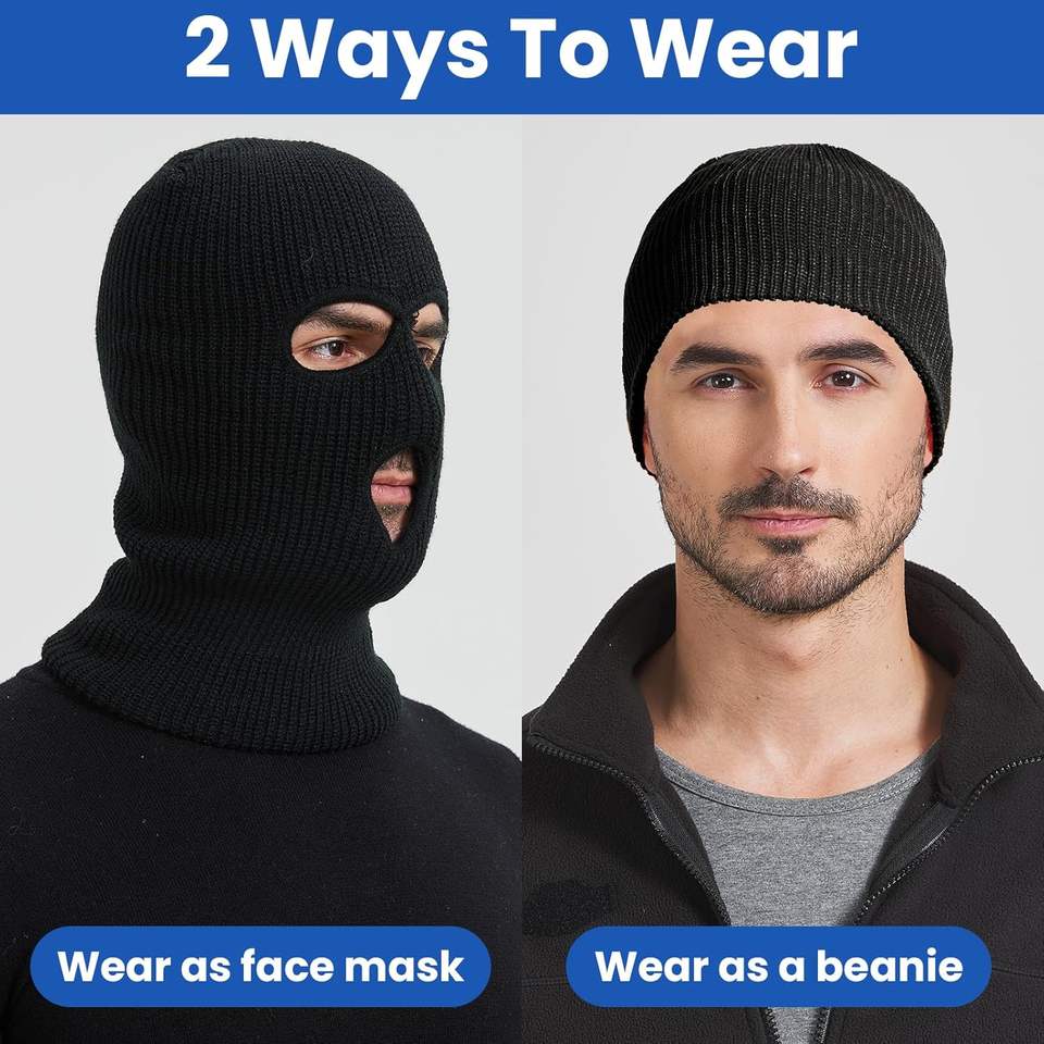 TopTie Double Tricoté Coupe-Vent Polyester Cagoule Masque Respirant pour Hommes et Femmes Conception à 3 Trous