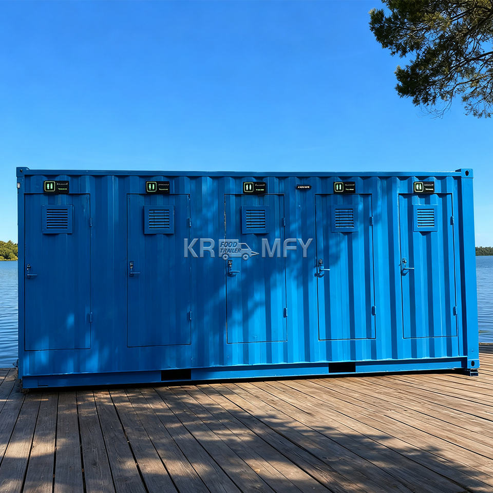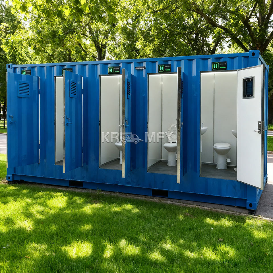 Toilettes en acier durable 2025, modèle 3D, pour usage extérieur, matériau panneau sandwich, remorque de douche pour toilettes