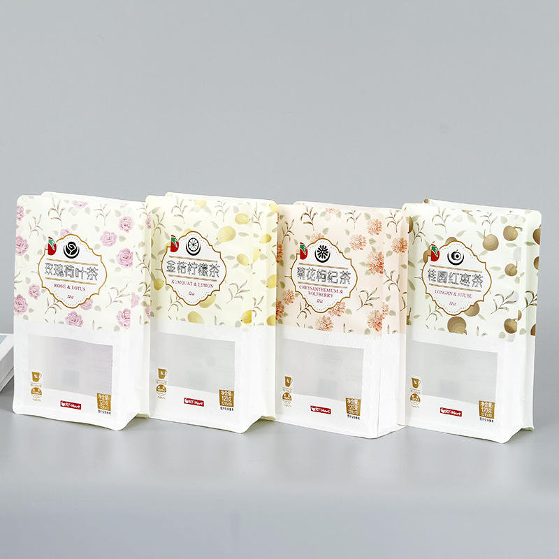 2025 sac en papier kraft auto-scellant à fermeture éclair à huit côtés expositions de supermarchés pour l'emballage de graines de citrouille grillées au sel