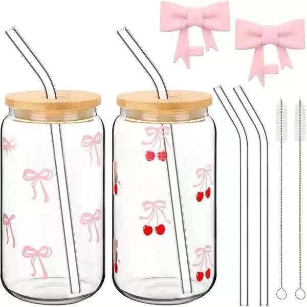2025 Emerit Logo personnalisé 12oz/16oz/20oz Sublimation transparente ou givrée canette de bière gobelet en verre avec couvercle et paille