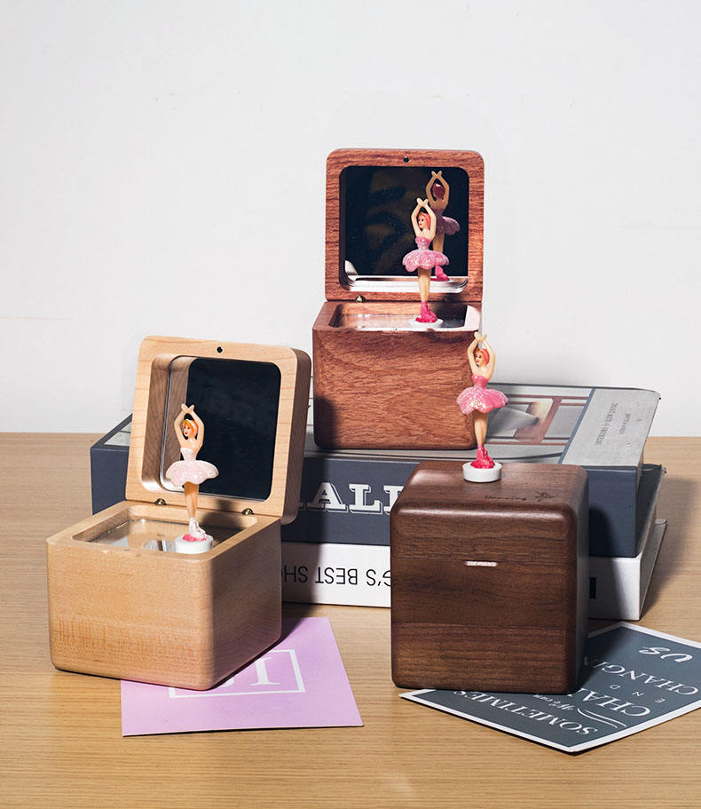 2025 Ever Bright Mini boîte à musique en bois personnalisée Mouvement Sankyo DIY Lettrage Érable Danse Ballerine Chanson 'Wind' Wind Up'