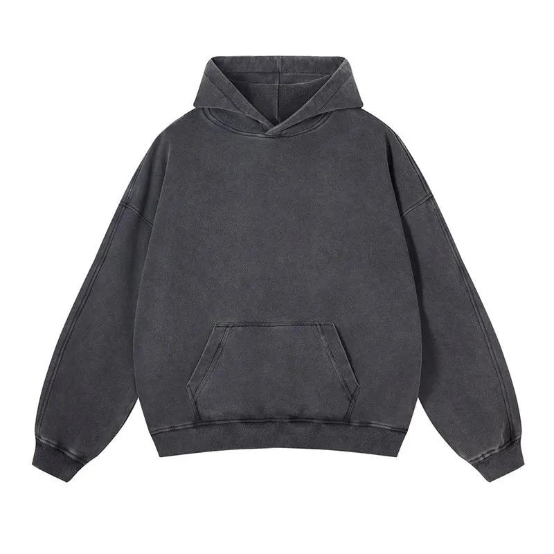 Vente directe d'usine 2025, sweat-shirts à capuche pour hommes avec logo personnalisé, lavage à l'acide, molleton surdimensionné, 100% coton, poche d'hiver, respirant, séchage rapide