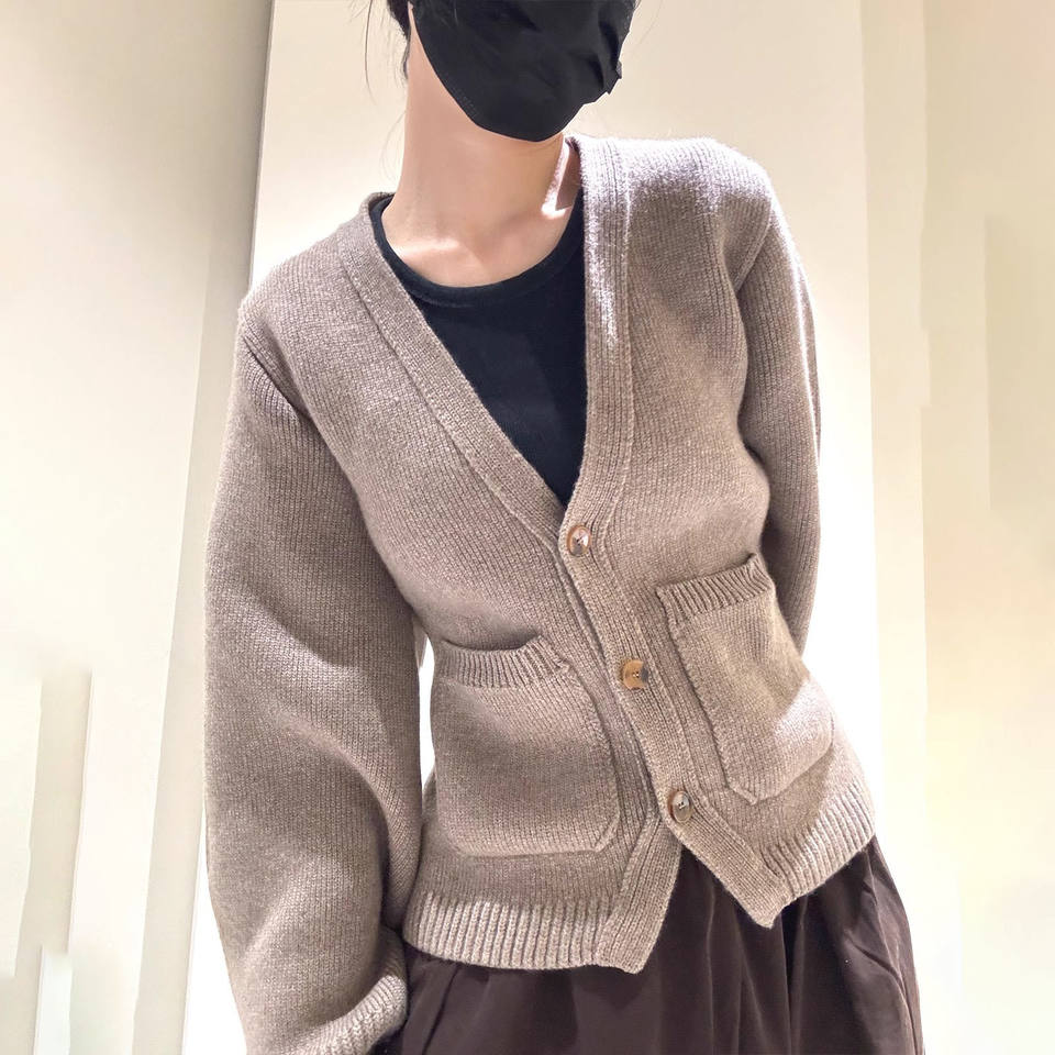 2025 pull femme direct usine décontracté couleur unie col en v taille haute cardigan en tricot
