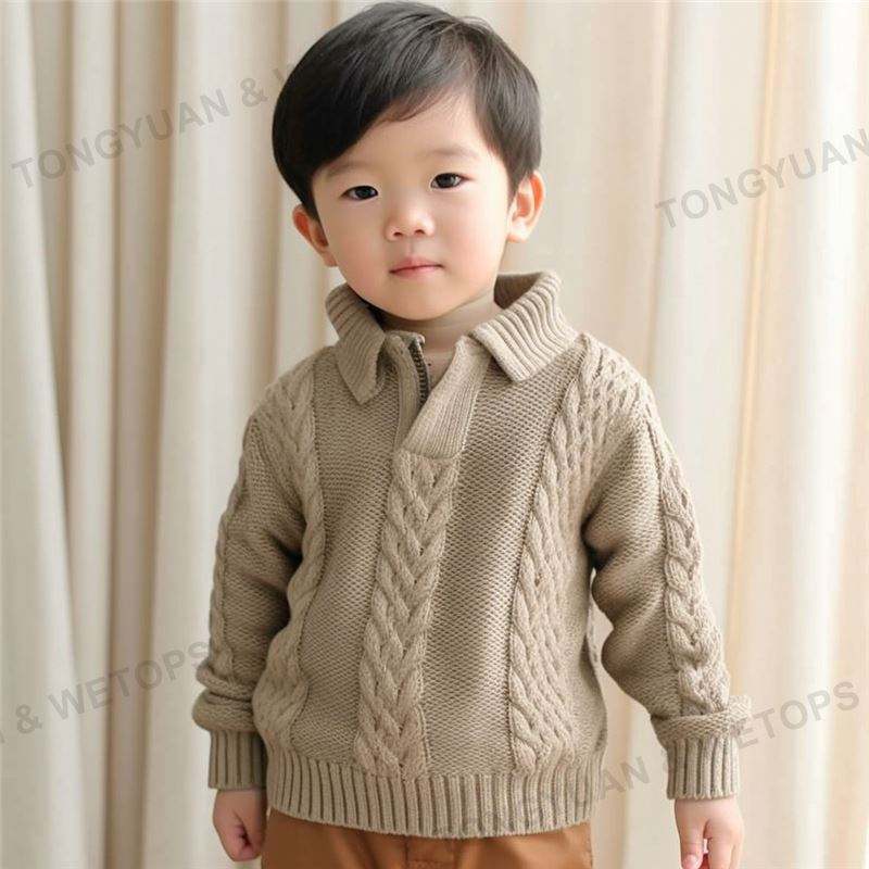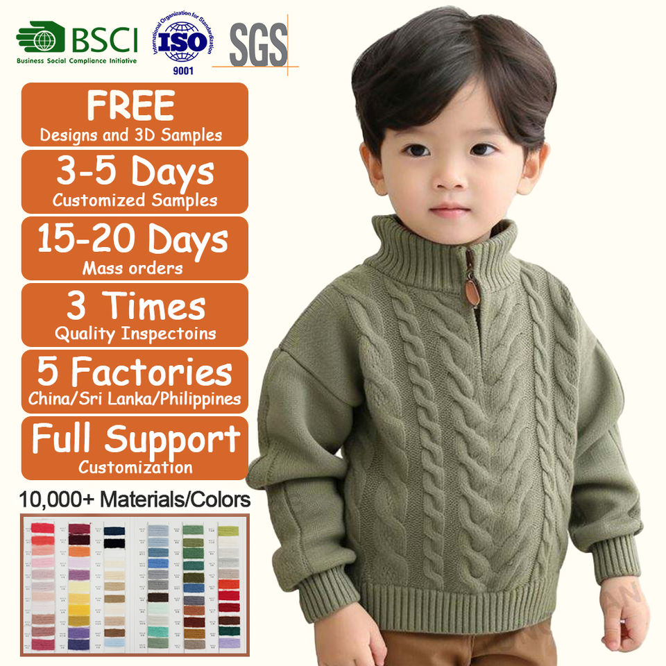 2025 automne hiver nouveau Design personnalisé coton acrylique tricot enfants chandails enfants demi-quart fermeture éclair pull bébé garçon chandails