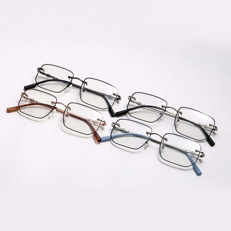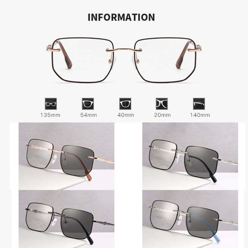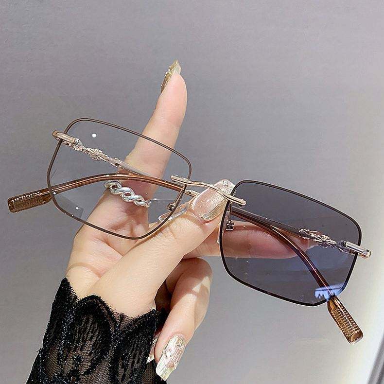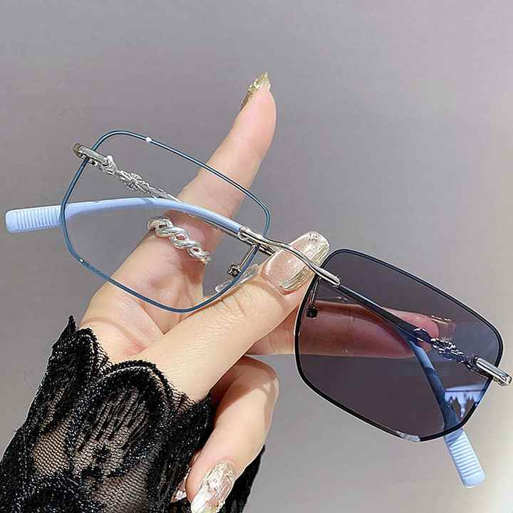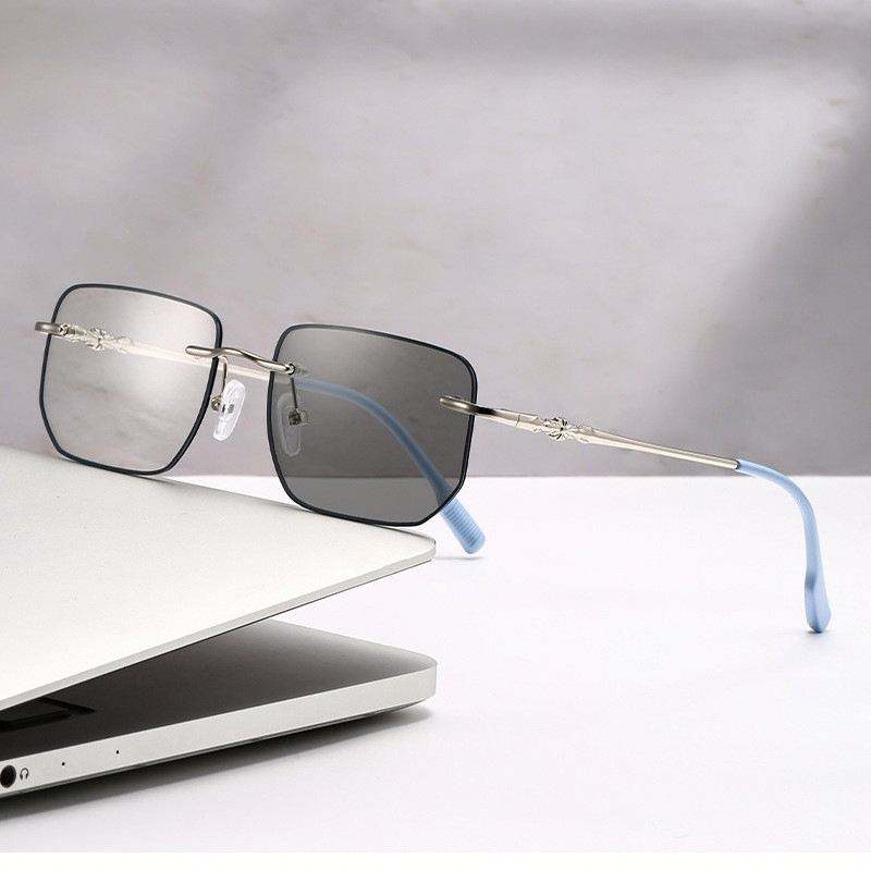 Lunettes photochromiques sans monture carrées anti-lumière bleue, couleur tendance 2025, pour femmes et hommes