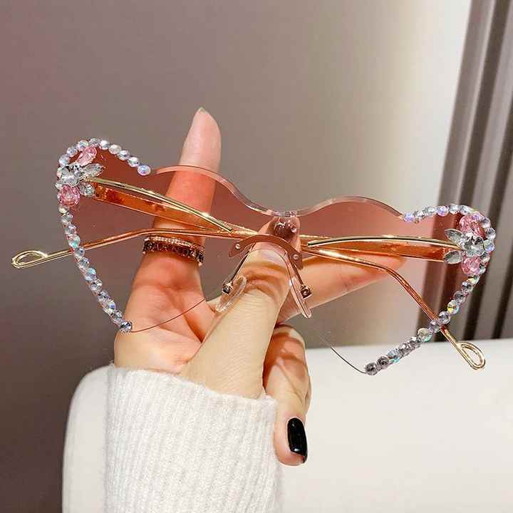 Lunettes de soleil de luxe tendance 2025 avec strass, verres dégradés, protection UV400, sans monture, en forme de cœur pour femmes