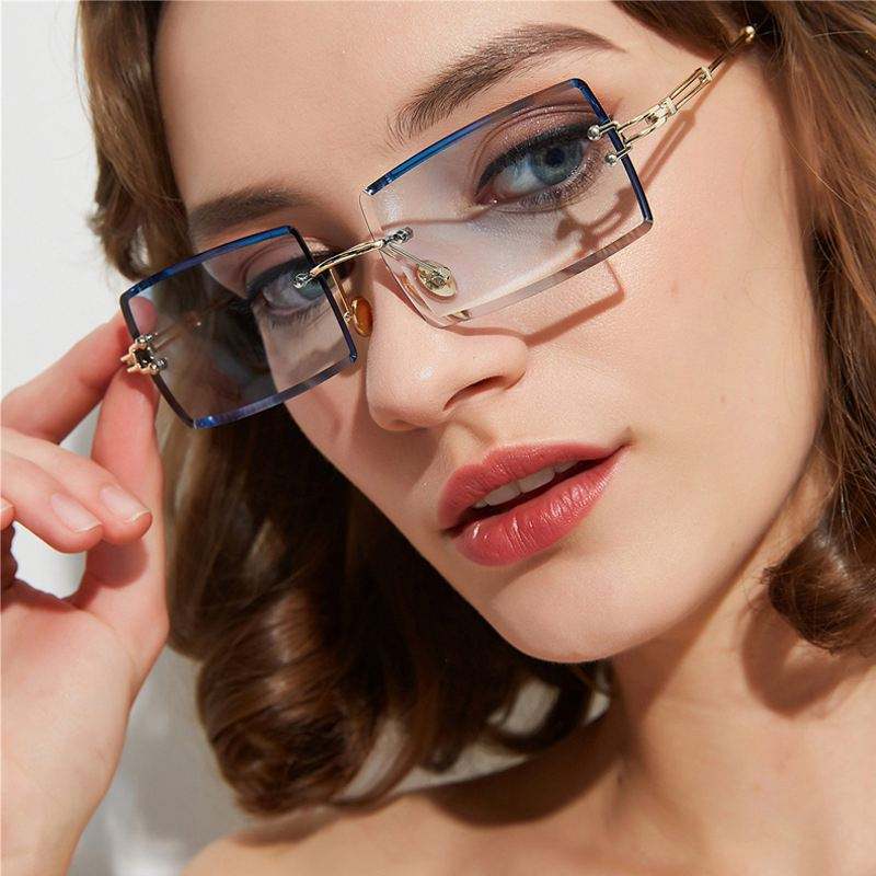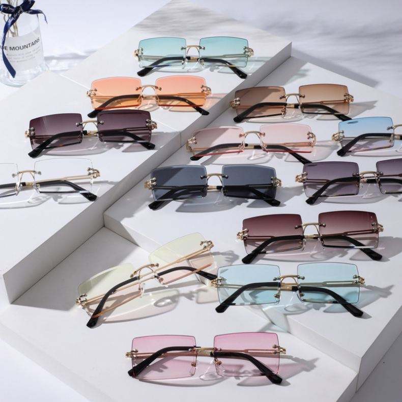 Lunettes de soleil carrées sans monture tendance 2025 pour femmes, style été, protection UV400, petites lunettes sans monture pour hommes et femmes
