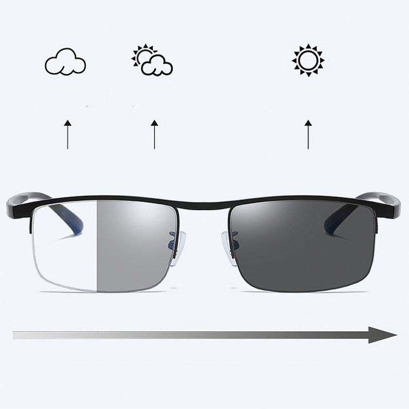 Lunettes de lecture progressives unisexes tendance 2025, demi-monture, photochromiques, anti-lumière bleue, pour presbytie