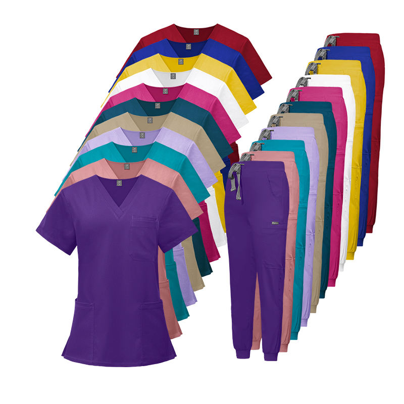 2025 Fashion Women's V-Neck Nursing Scrub Set Soft Fabric Solid Color Stretch Jogger Hospital Uniform