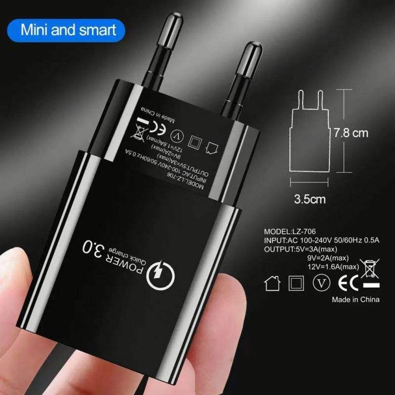 Chargeur rapide 2025 QC3.0 pour téléphone portable, 18W, prise US/EU, chargeur mural rapide pour iPhone pour Huawei