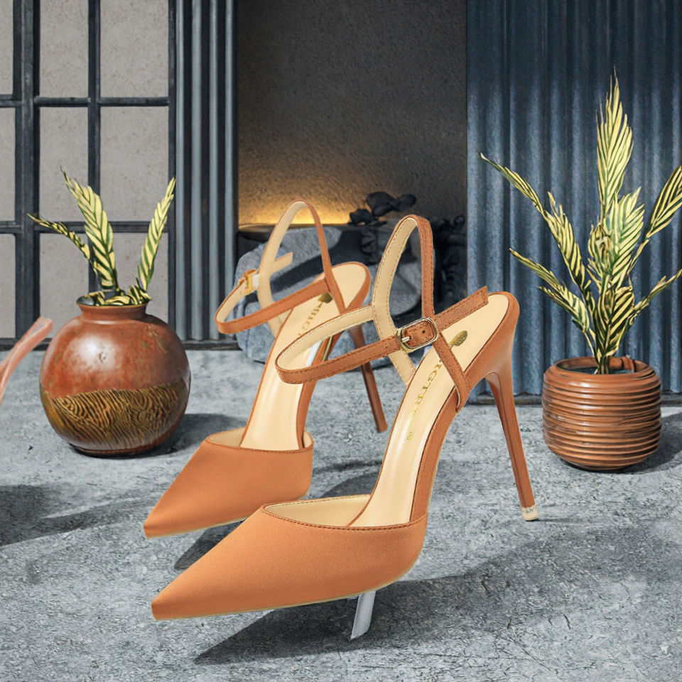 Escarpins Femme 2025 de Haute Qualité à Bout Pointu en Soie avec Bride Cheville, Antidérapants, Tendance, Élégants, Semelle Rouge, Printemps/Été/Hiver