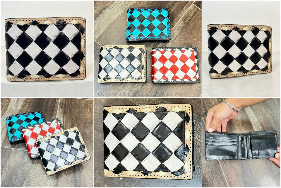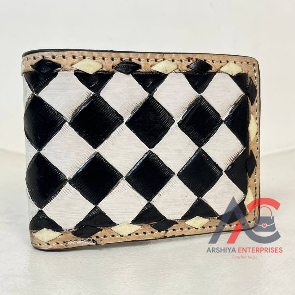 Product Name:Checkered Genuine Leather Men's Bifold Wallet