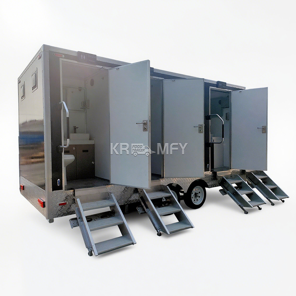 Salle de bain mobile de luxe authentique 2025 à 5 postes, toilettes portables, remorque de toilettes