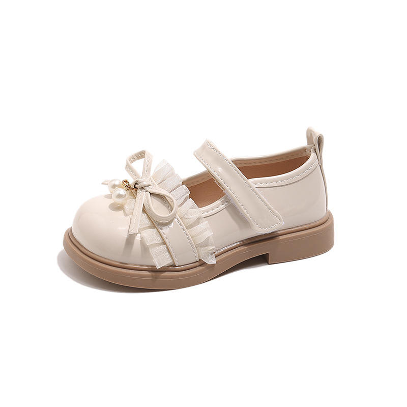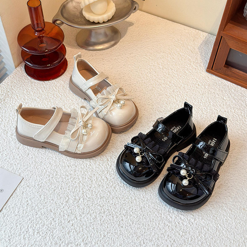 2025 Girls Lolita Leather Low-top Single Shoes Stylish Princess Performance Bow for Spring Autumn Kids Dance Black/Off-white
