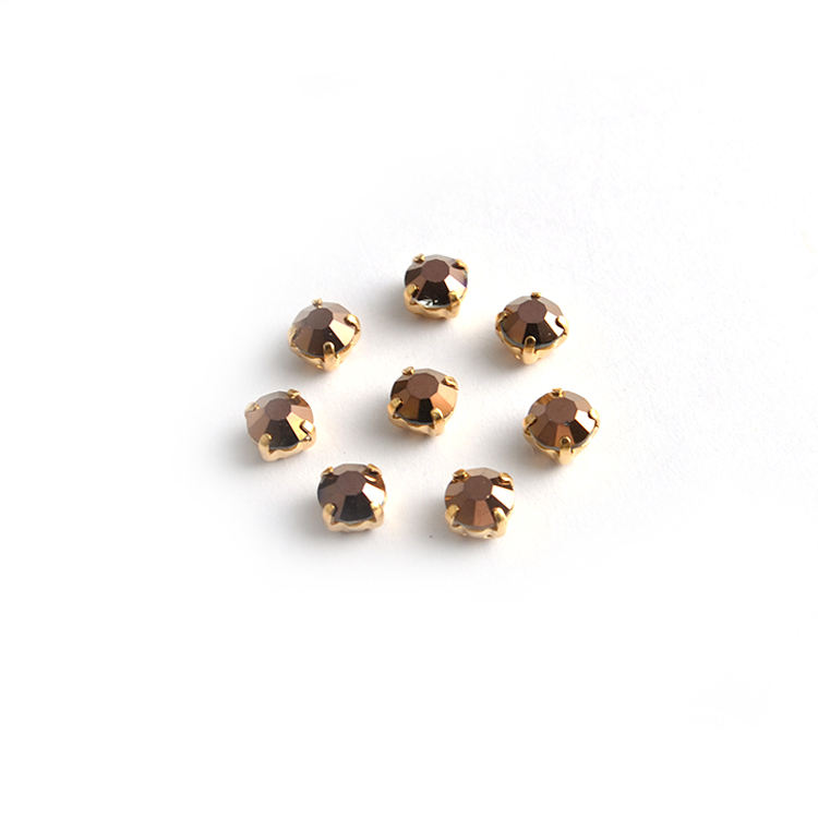 Perles en strass Chaton plaqué or 2025 cousues sur des strass à pointe arrière avec broches pour la fabrication de bijoux