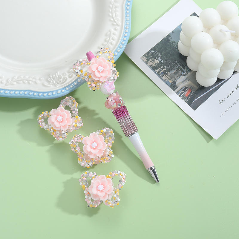 2025 perles acryliques de fleur de papillon colorées peintes à la main pour bricolage créatif artisanat stylo fabrication de bijoux perles de Lucite en plastique