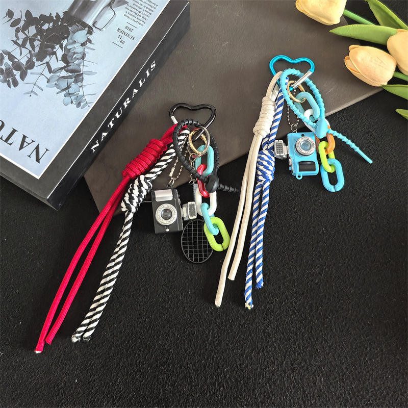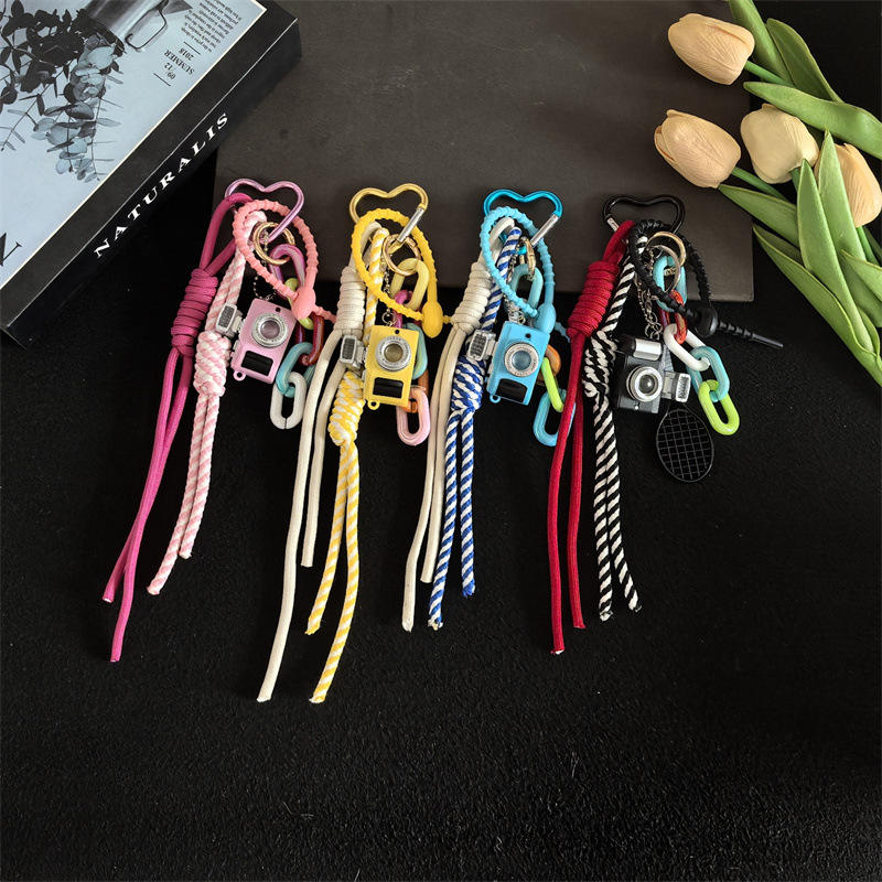 Mini caméra artisanale transfrontalière 2025 pour porte-clés mousqueton sécurisé, pendentif de sac en corde tressée, pour petit porte-clés d'amour