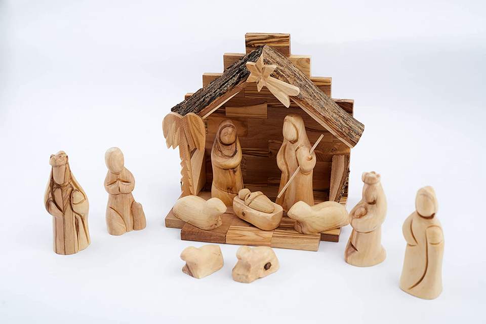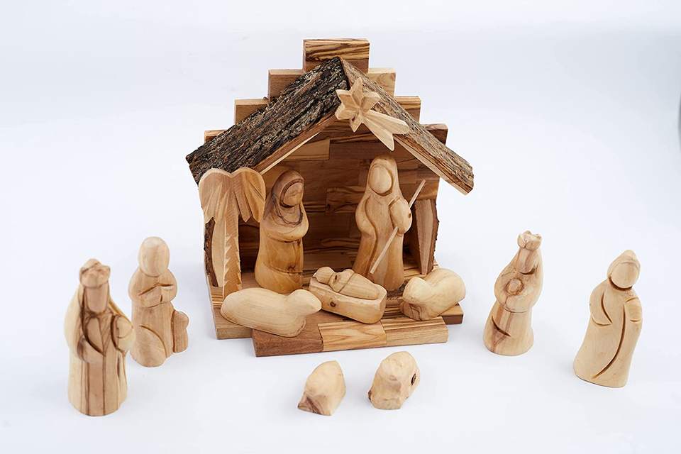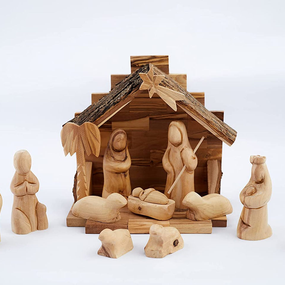 Crèche artisanale en résine et bois d'olivier 2025 – Scène personnalisée de la naissance de Jésus