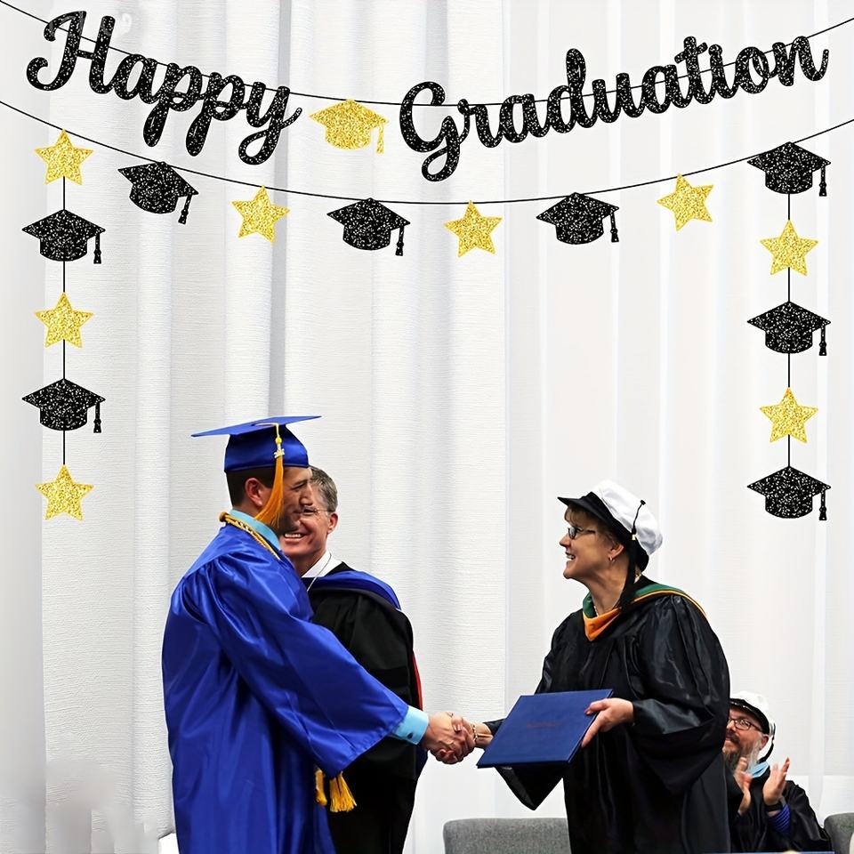 2025 bannière de remise des diplômes heureuse, guirlande de félicitations, bannière de chapeau de doctorat pour décor de fête de saison de remise des diplômes du lycée