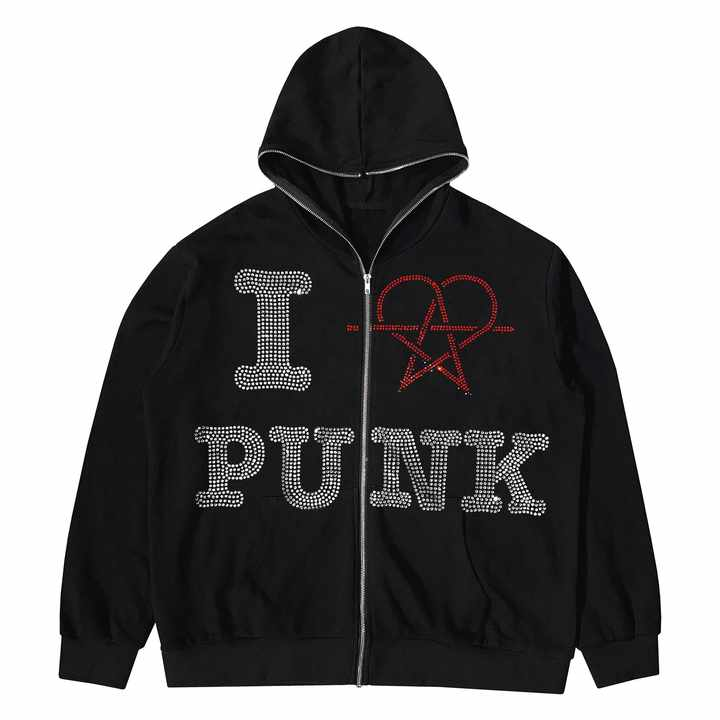 2025 High Demand Antique Oversized Rhinestone Hoodie Streetwear Fall Winter Clothing Pullover Rhinestone Shiny Logo Hoodies
