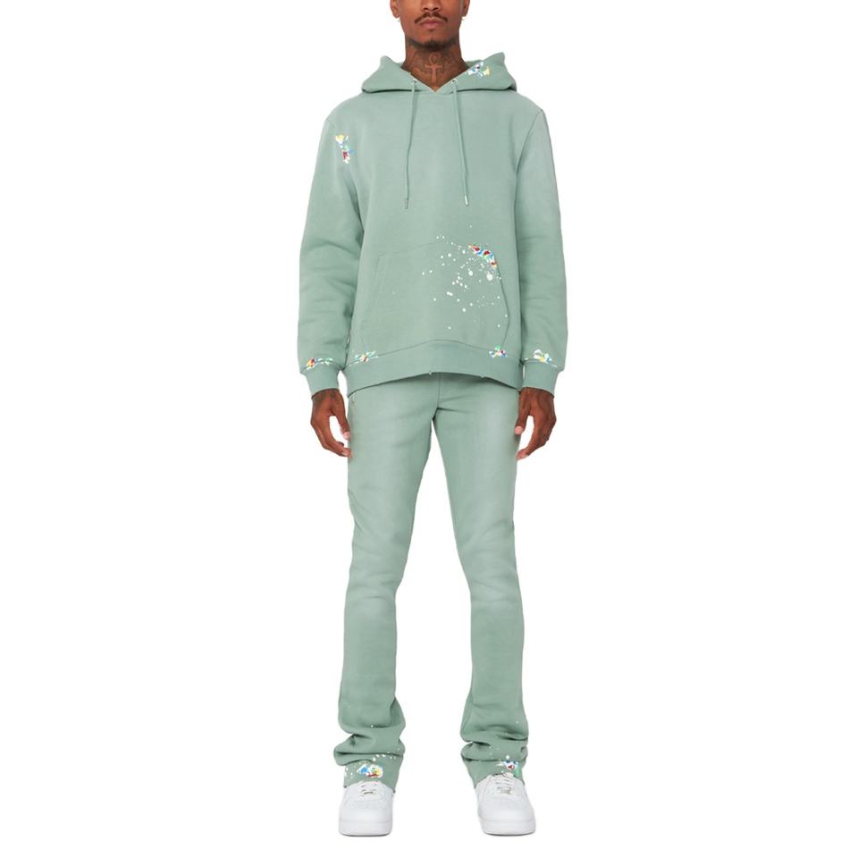 2025 haute qualité conception personnalisée coton lourd hommes Flare survêtement ensemble lourd deux pièces sérigraphie Flare survêtement