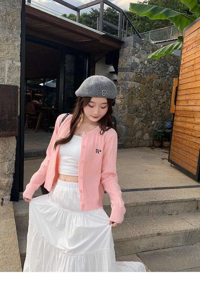 Cardigan court en maille grise de haute qualité pour femme – Collection 2025