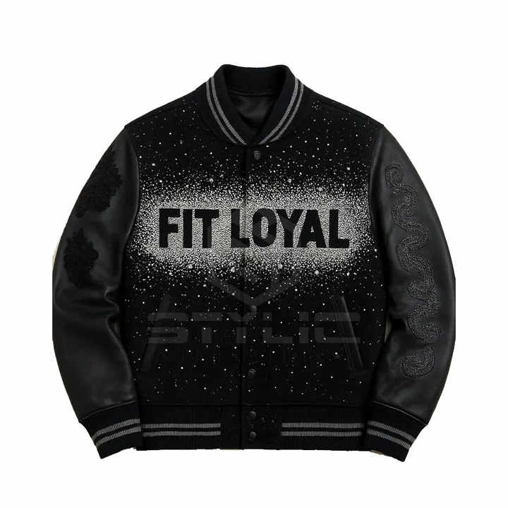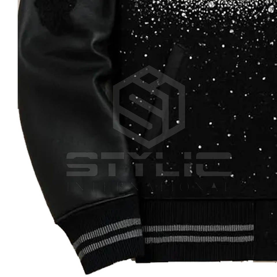 2025 haute qualité fait bas quantité minimale de commande strass Varisty vestes d'hiver Logo personnalisé imprimé strass Varisty vestes