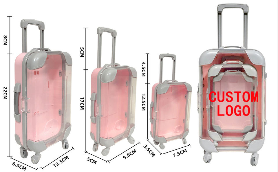 2025 haute qualité Mini valise de maquillage Logo personnalisé bas quantité minimale de commande brillant à lèvres cils outils en gros boîte d'emballage transparente modèle 3D