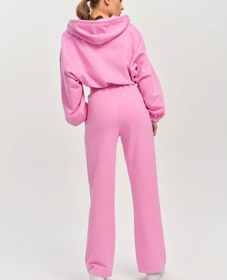 Ensemble survêtement polaire deux pièces pour femme, haut zippé et pantalon, couleur unie, haute qualité 2026