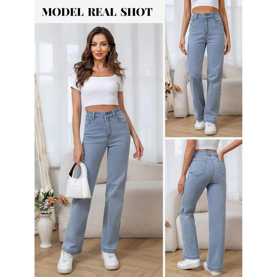 2025 High Waisted Trendy Stretchy Baggy Jeans for Women-Breathable Loose Fit Wide Leg Denim Pants Style