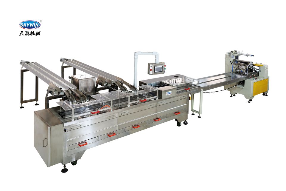 Two Lanes Sandwiching Machine with Flow Packing Machine