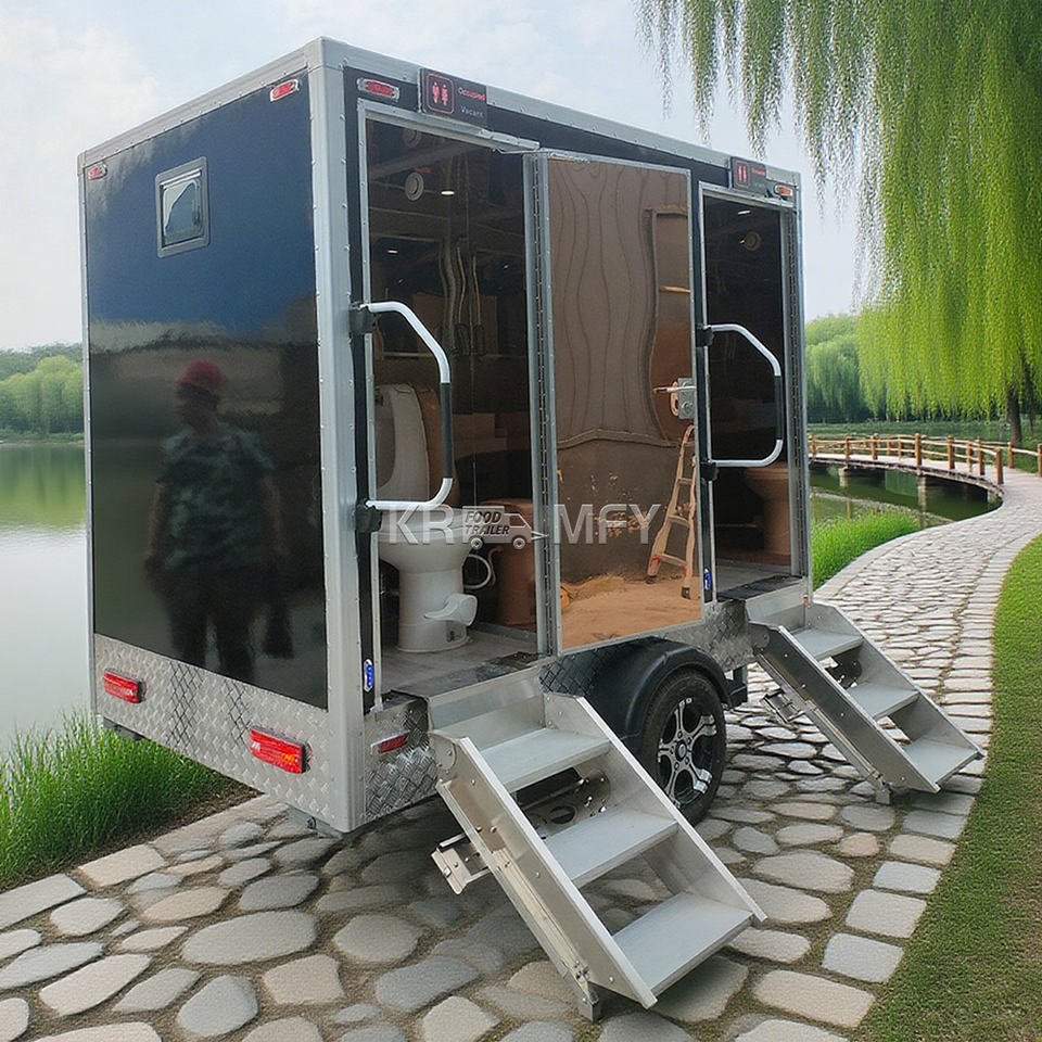 Vente chaude 2025 Toilettes mobiles de luxe VIP Salle de bain portable extérieure Remorque de toilettes