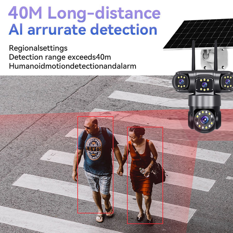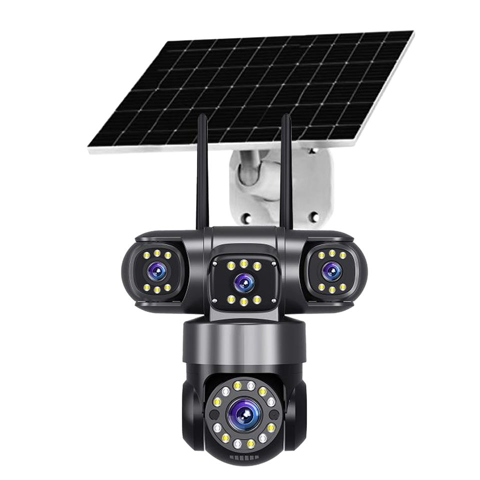 2025 Vente chaude 8MP 360 Caméra de sécurité domestique sans fil WiFi/4G à énergie solaire avec capteur CMOS à trois objectifs pour la surveillance extérieure