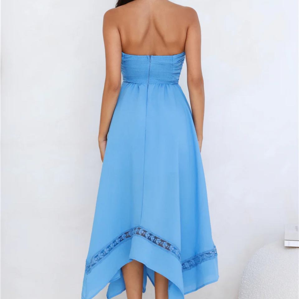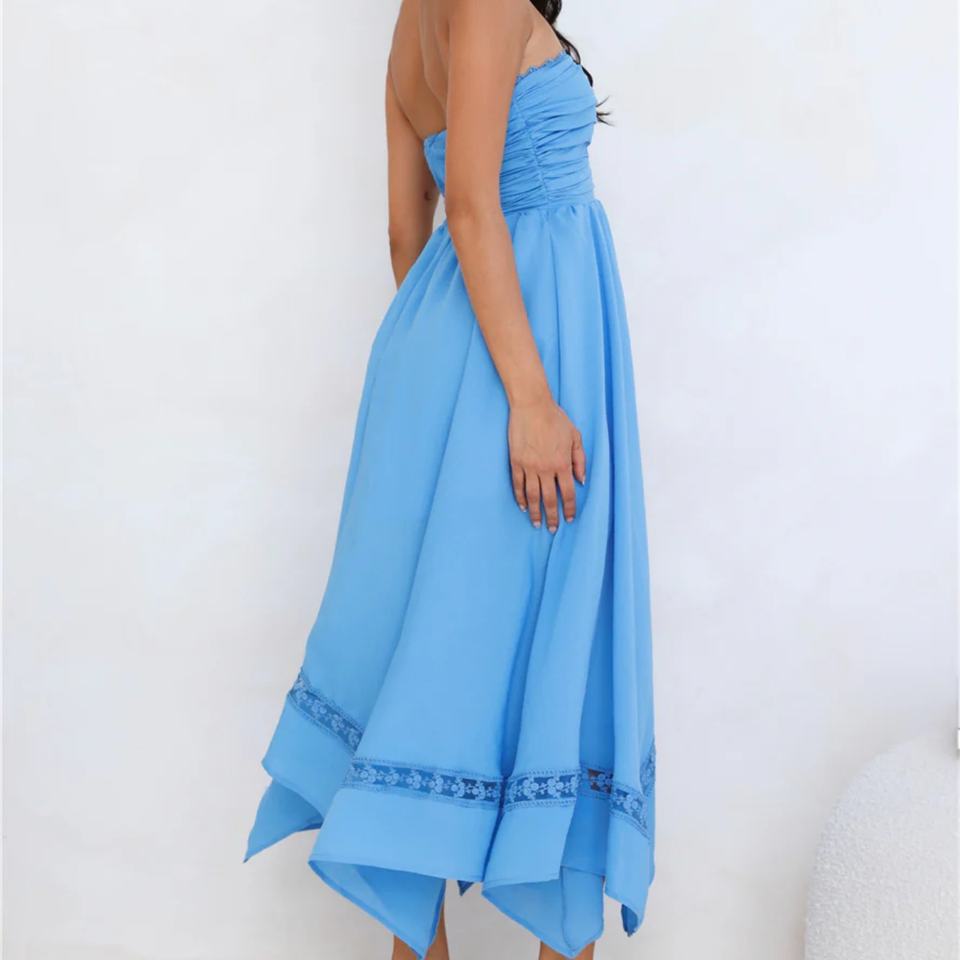 Robe d'été tendance 2025, style bohème, sexy, dos nu, sans bretelles, pour les vacances, bleu ciel, robe de plage pour femmes