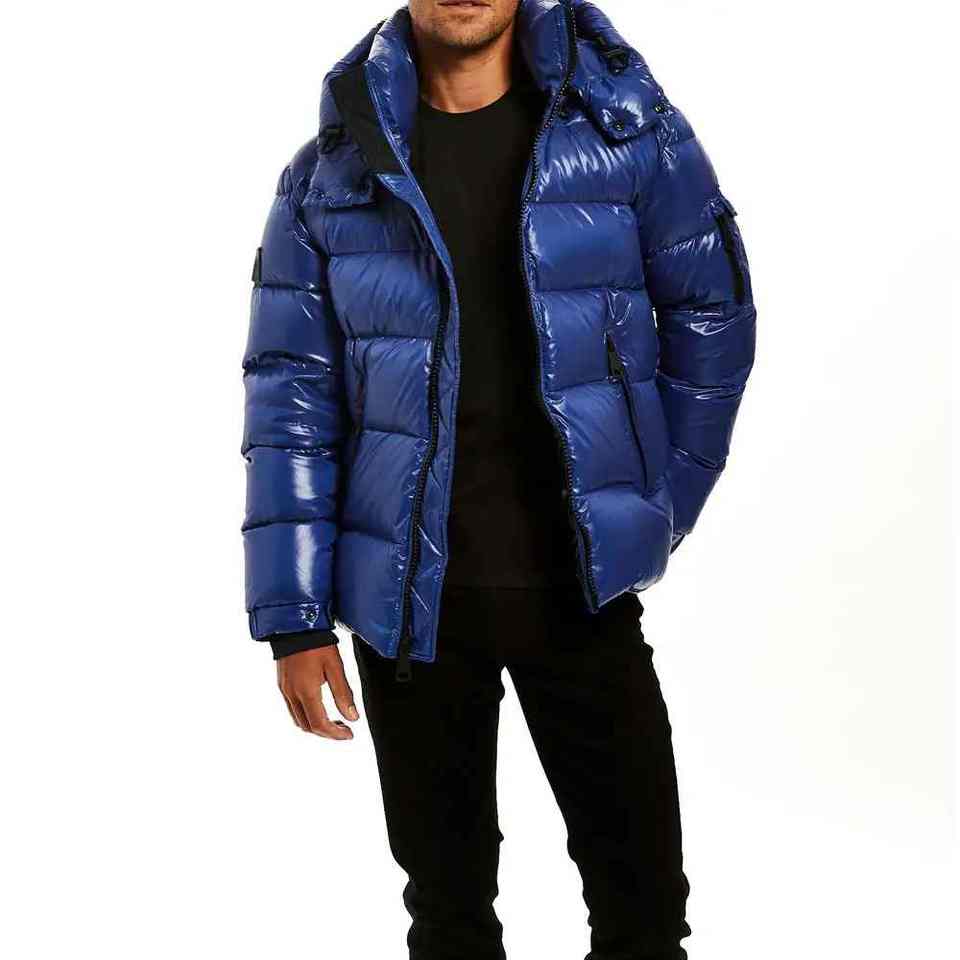 2025 vente chaude personnalisable bleu foncé veste d'hiver hommes bouffant capuche détachable col rond chaud bulle Style haut devant
