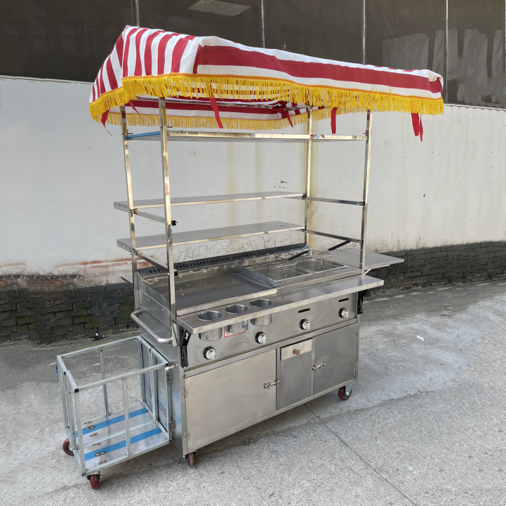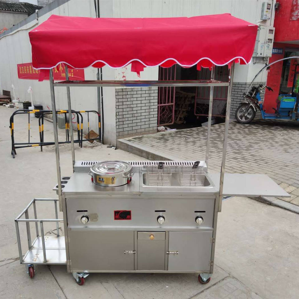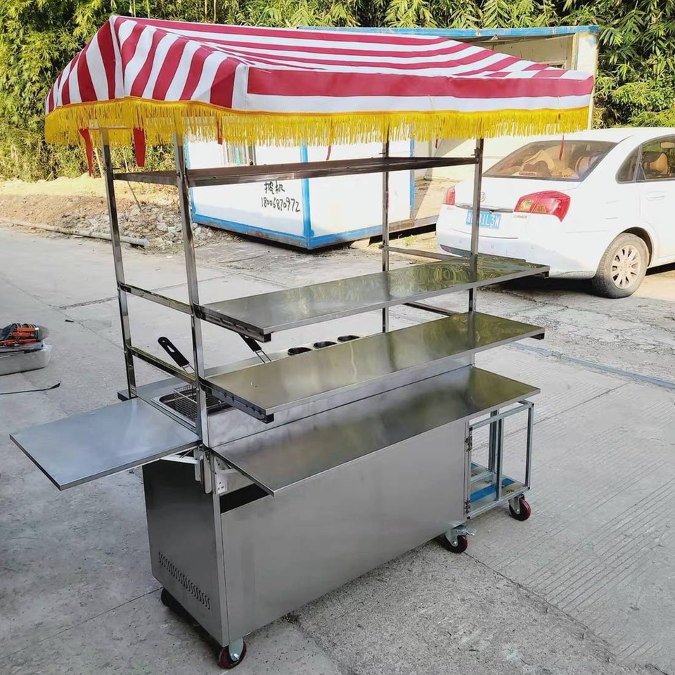 Chariot de vente ambulante à gaz en acier inoxydable détachable pour la vente de nourriture de rue, de collations et de boissons, sortie d'usine, vente chaude 2025