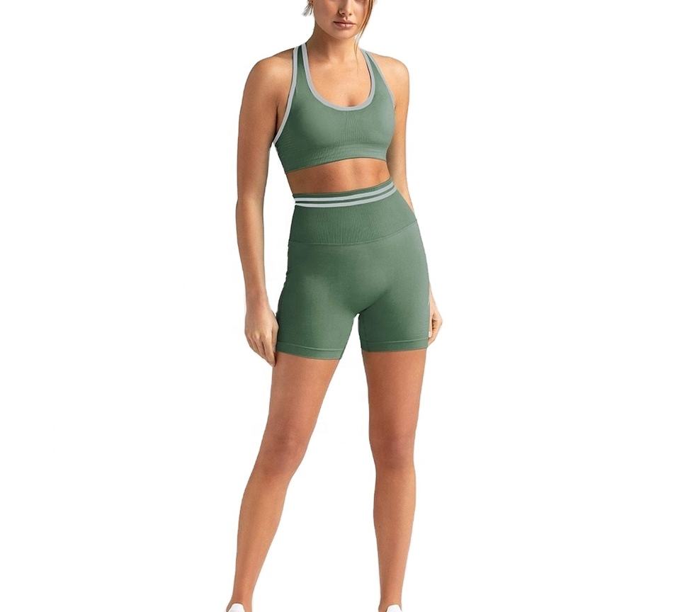 Ensemble de yoga et de fitness deux pièces sans couture pour femmes, taille XL et plus, soutien-gorge court et short, vente chaude 2025