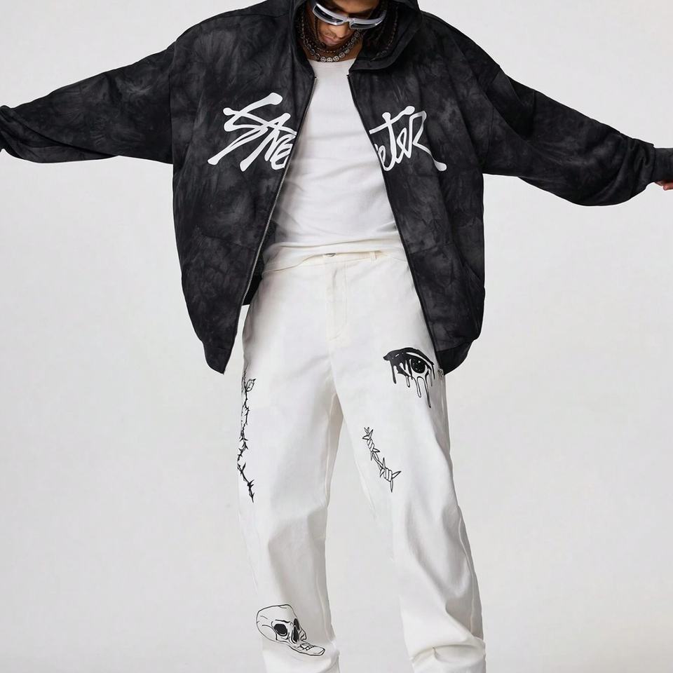 Nouveau Hoodie Hiver 2025 Tendance Streetwear Rétro Délavé Effet Usé Oversize 100% Coton Imprimé Numérique Personnalisé Épaules Tombantes