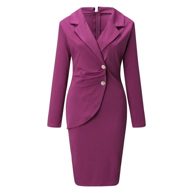Robes de carrière 2025, robe crayon fendue à col rond d'été pour femmes, robe de bureau décontractée simple avec manches serrées, style formel