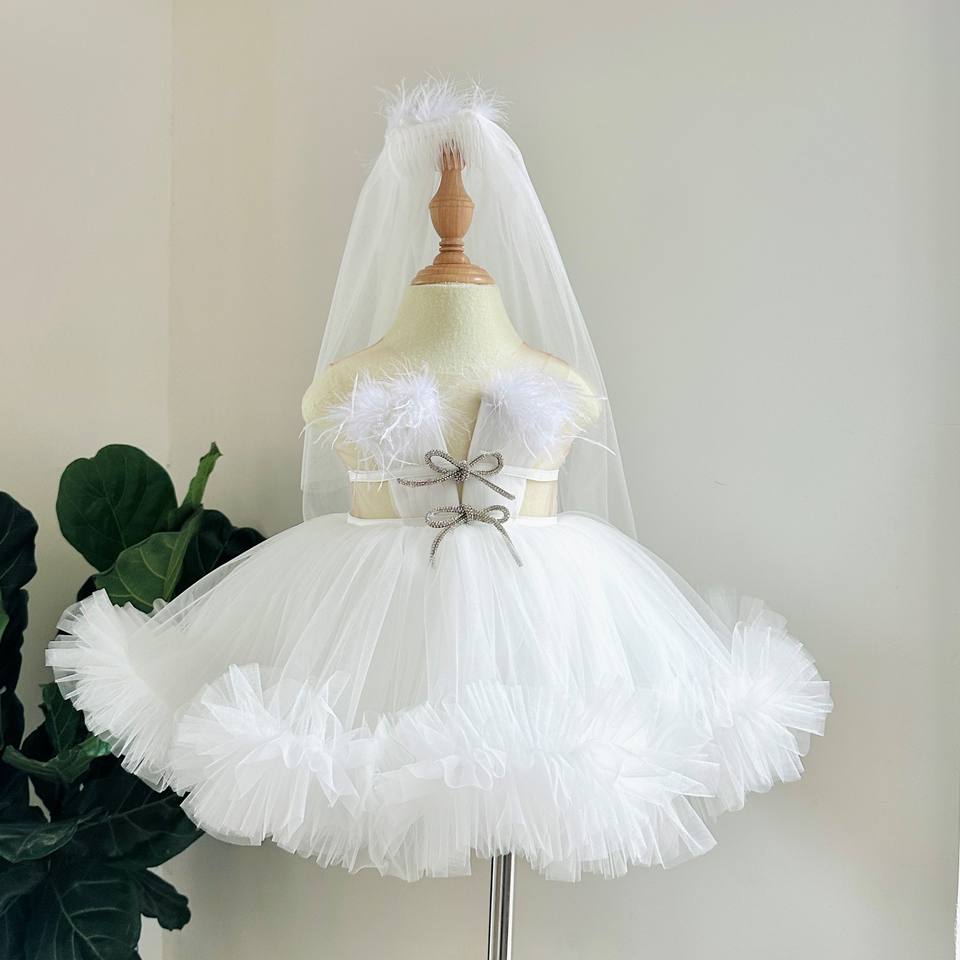 2025 Kids Glitter Birthday Dress White Color Princess Style Fluffy Dress for Girls Nhung Nguyen Birthday Party Dresses