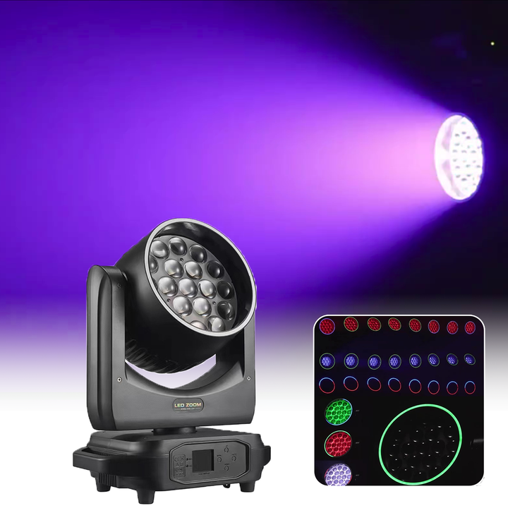 Projecteur Wash à Zoom à Tête Mobile LED 19*15W
