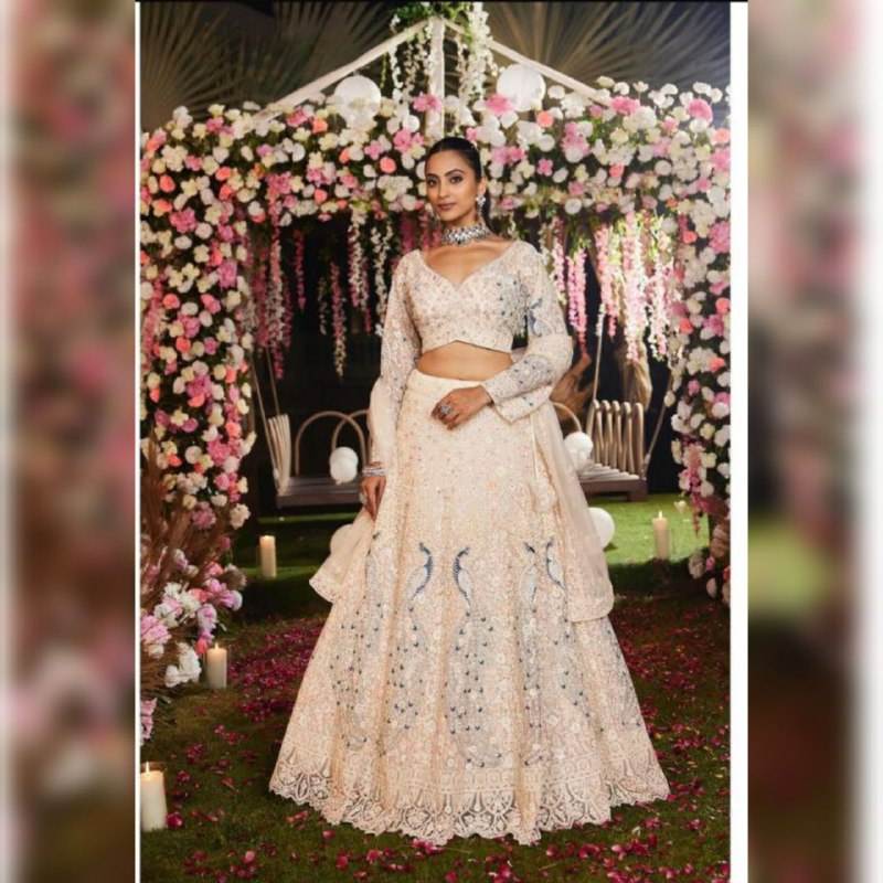 Travail de Lehenga:Travail de paillettes de codage avec Cancan et Canvas Patta