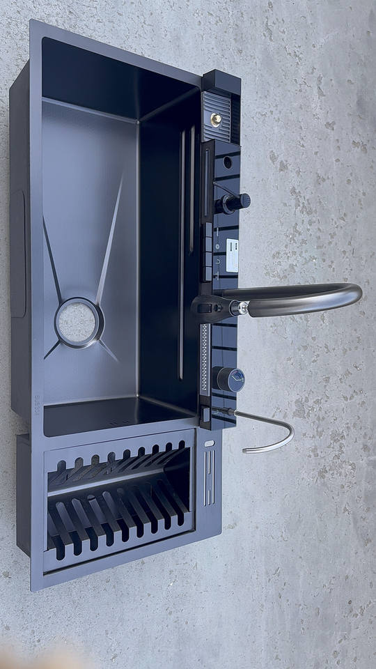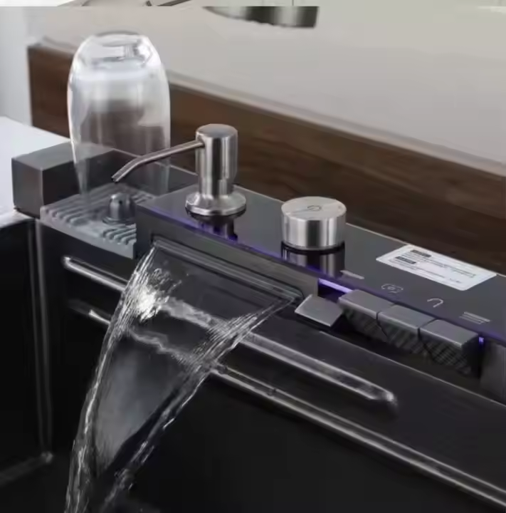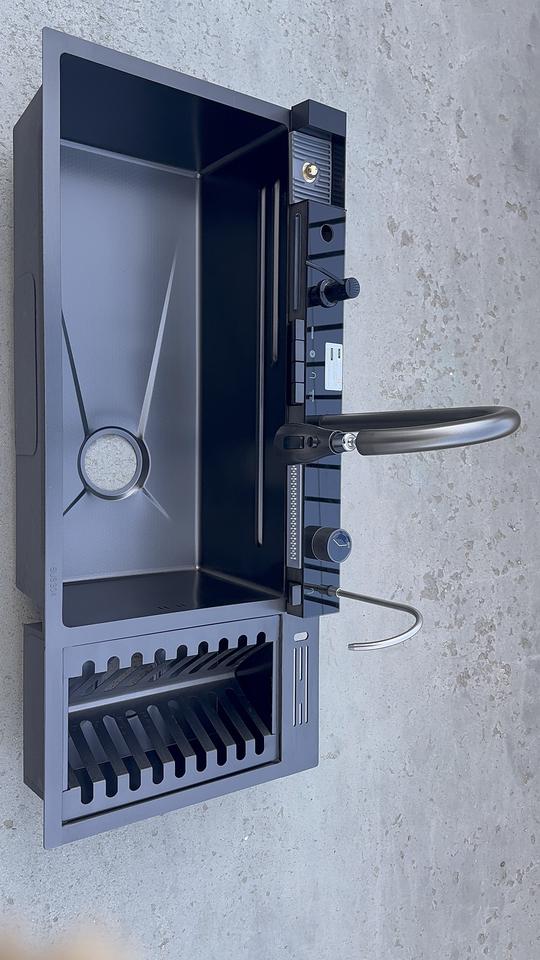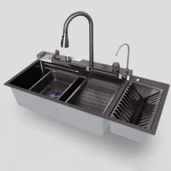 2025 grande taille 304 évier en acier inoxydable clé de Piano Led affichage numérique cascade évier de cuisine avec plateau de séchage