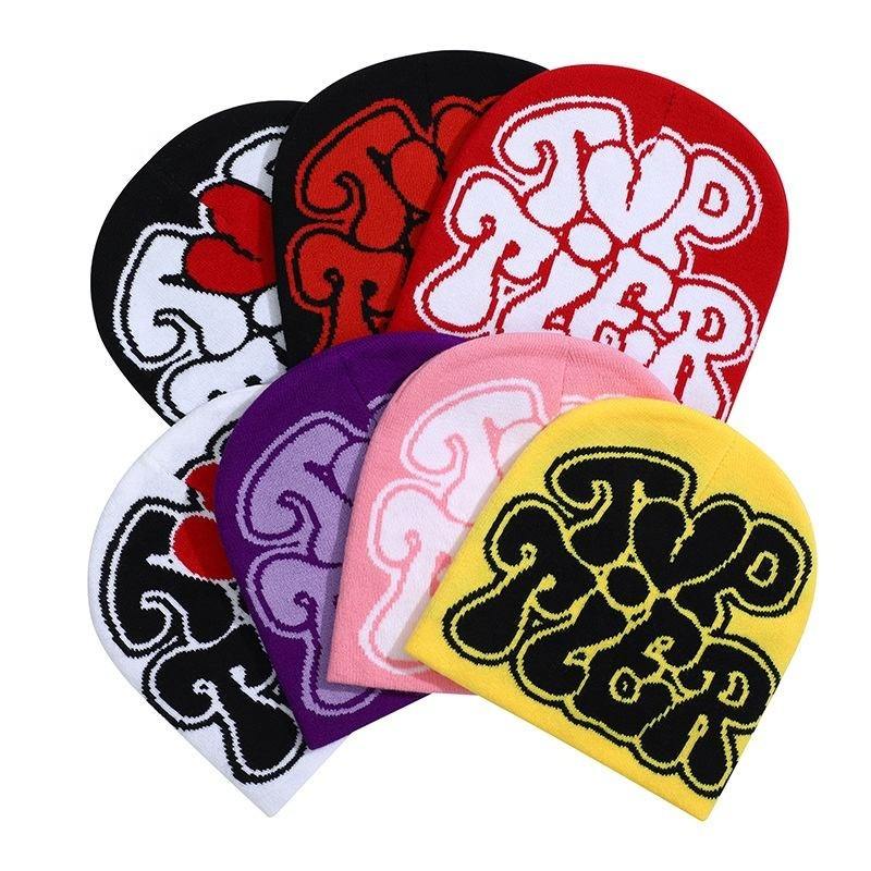 2025 dernier personnalisé épais hommes bonnets sans manchette sans manchette Jacquard lettre acrylique crâne casquette bonnet