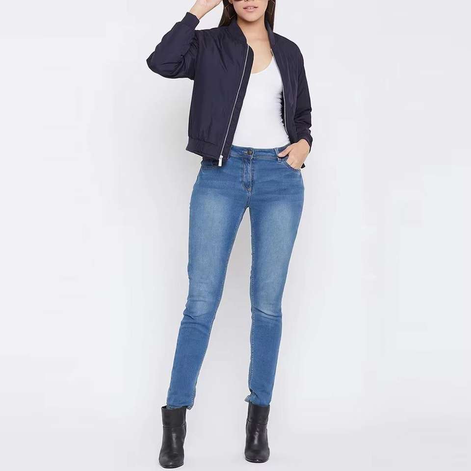 Blousons aviateur pour femmes de couleur marine, design 2025, tissu 100% polyester, col montant, fermeture éclair oversize, blousons bomber pour femmes
