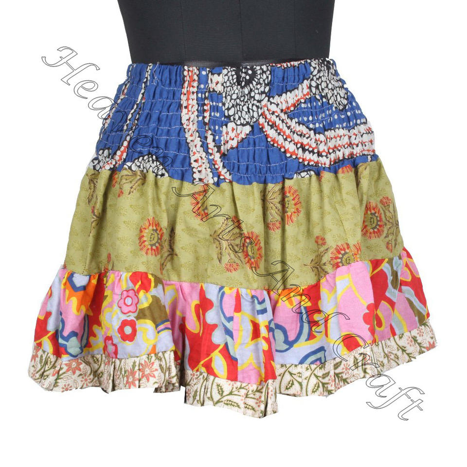 Keywords:Vintage Cotton Sari Patches Mini Skirt