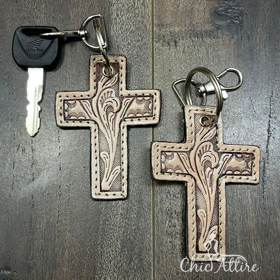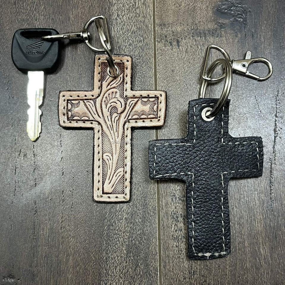 Product name:Hand Tooled Cow Leather Cross Keychain