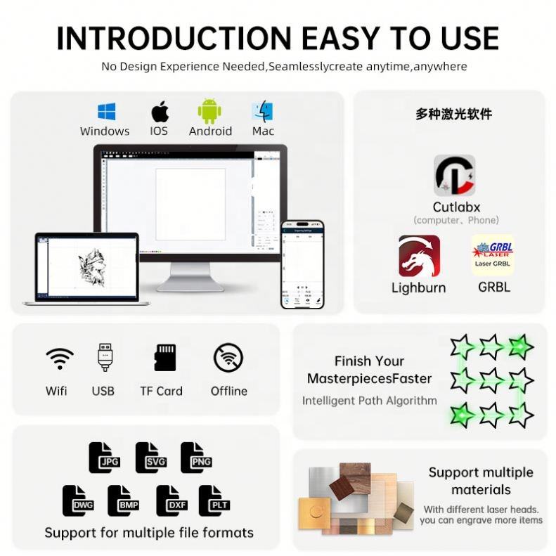 Format graphique soutenu:AI, PLT, DXF, BMP, DST, DWG, LAS, DXP
